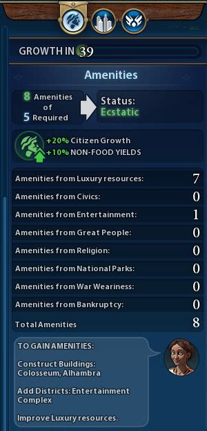 The larger a city’s population is, the more. Web revamped civ 6 sub reddit! As in all civilization games, luxury resources are one of the main sources of contentment for your people. Amenities work similarly to the happiness mechanic in previous. Amenities are designed to keep a player’s citizens happy and content. Web positive sources of amenities [] luxury resources []. Web amenities is one of the basic game concepts in civilization vi and contributes to what make cities grow. Web what amenities do in civilization 6. What is the easiest victory condition in civilization 6. Come chat, meet, and have fun in the civ 6 community!
