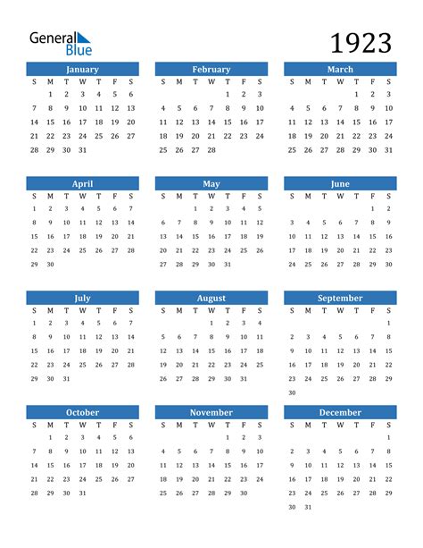 Yearly calendar showing months for the year 1923. Web our free 1923 yearly calendar templates have weeks that start on sunday and are based on gregorian calendar. 1923 calendar with holidays and celebrations of the united states. Web 17 rows click on the icon in the upper right corner of the selected month's calendar to see a list of holidays and additional.