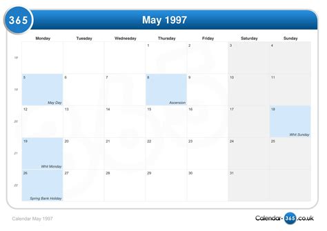 Calendar May 1997. Web download printable may 1997 calendar. Blank may calendar and may holidays 1997 are also available.