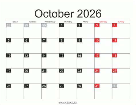 October 2016 Printable calendar Printable Calendar Templates