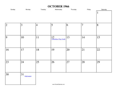 Free printable calendar for october 1966. View online or print in pdf format. << prev sep 1966 next nov 1966 >> month events. Free printable calendar for october 1966.