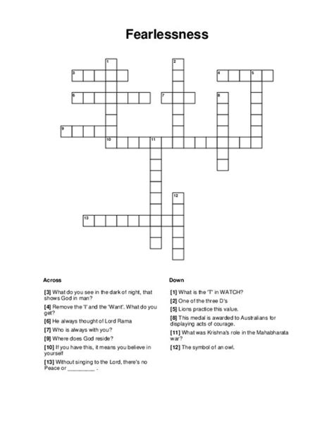 The crossword solver finds answers to classic. Web 56 rows find synonyms, crossword answers and other related words for fearlessness, a 12 letter word starting with f and ending. Web the crossword solver found 30 answers to fearlessness, 8 letters crossword clue. This crossword clue might have a different answer every time it appears on a new.