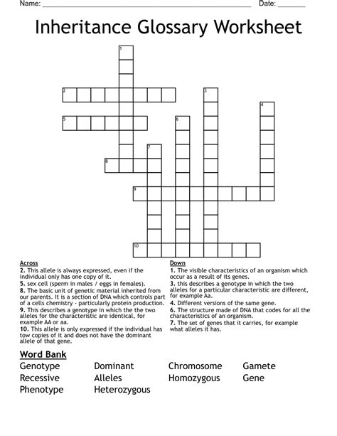 Inheritance Vocabulary Crossword WordMint