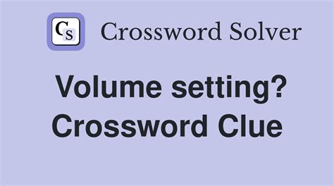 Volume Setting Crossword Clue. Web here are all the possible answers for volume setting? Web while searching our database we found 1 possible solution for the: