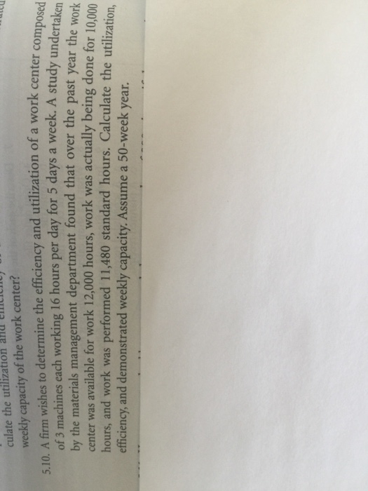 Solved culate utilization center? the ana weekly capacity of