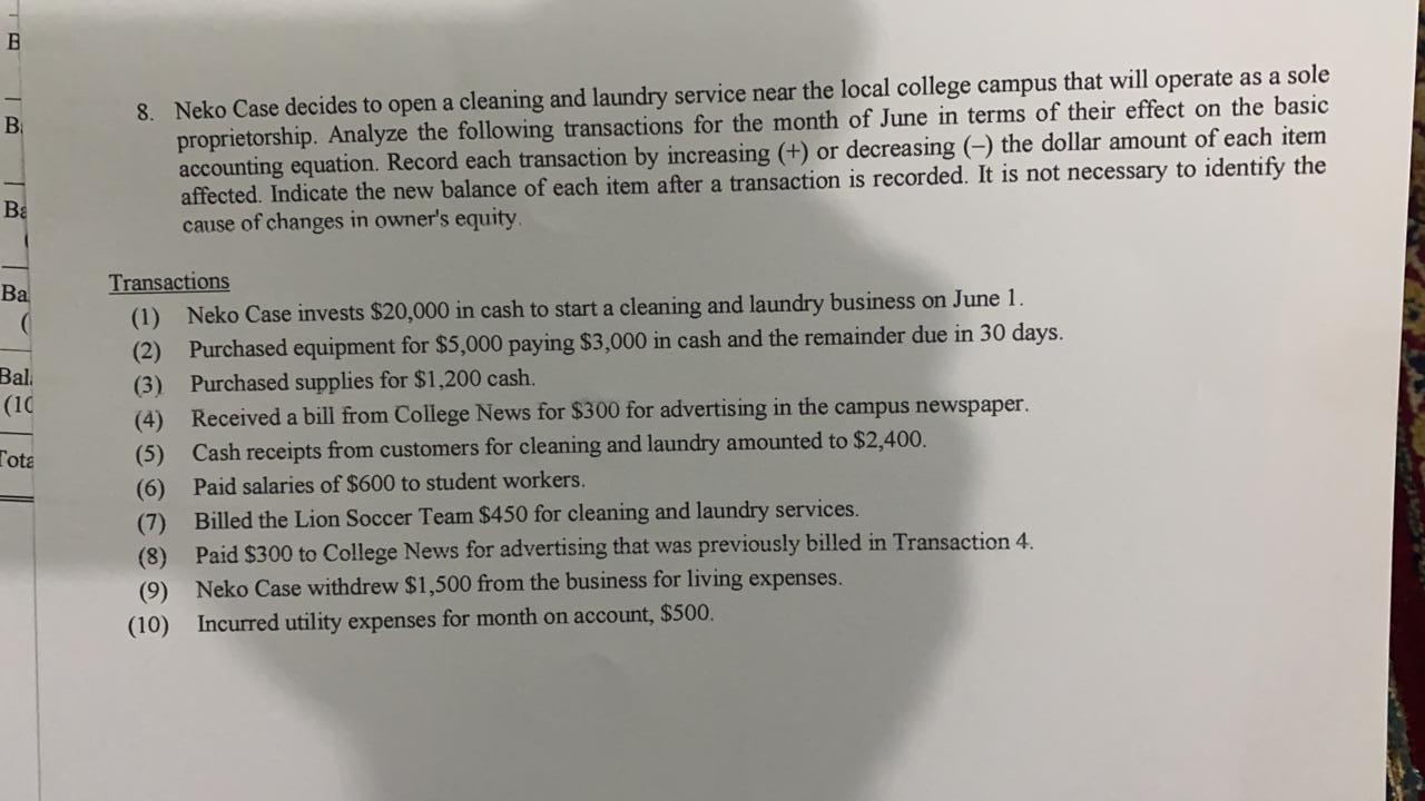 Solved B В. 8. Neko Case decides to open a cleaning and