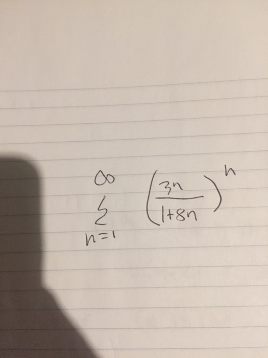 Solved sigma_n=1^infinity (3n/1 + 8n)^n