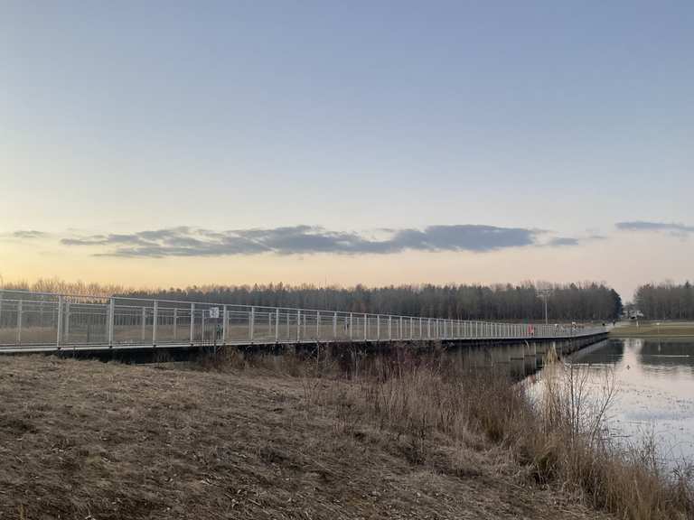 Fußgängerbrücke mit Verlandungszone am Messesee Wanderungen und