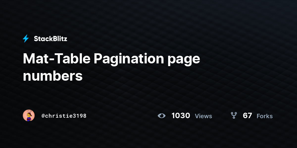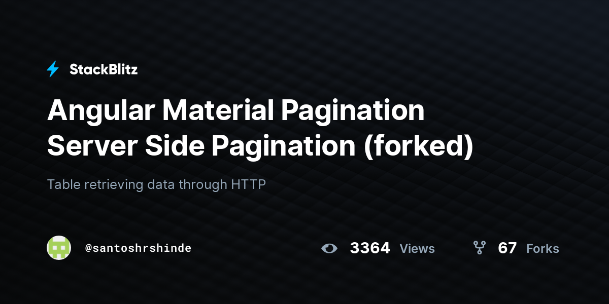 Angular/Material Pagination With Page Numbers Stackblitz - 17 i found a piece of code from here which is working fine for me:. We will create a directive called appbubblepagination,. Web the whole source code is available on stackblitz. Web 3 answers sorted by: