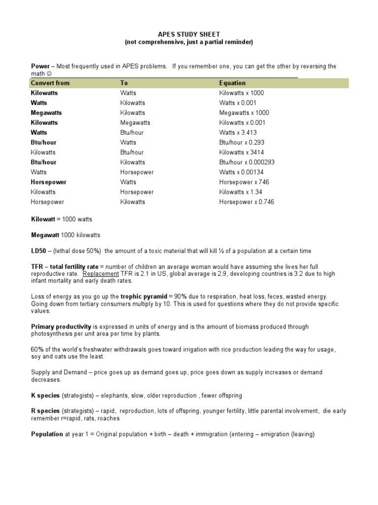 Apes Cram Sheet - Web as the ap environmental science exam approaches make sure to use this cram sheet to help you study and.