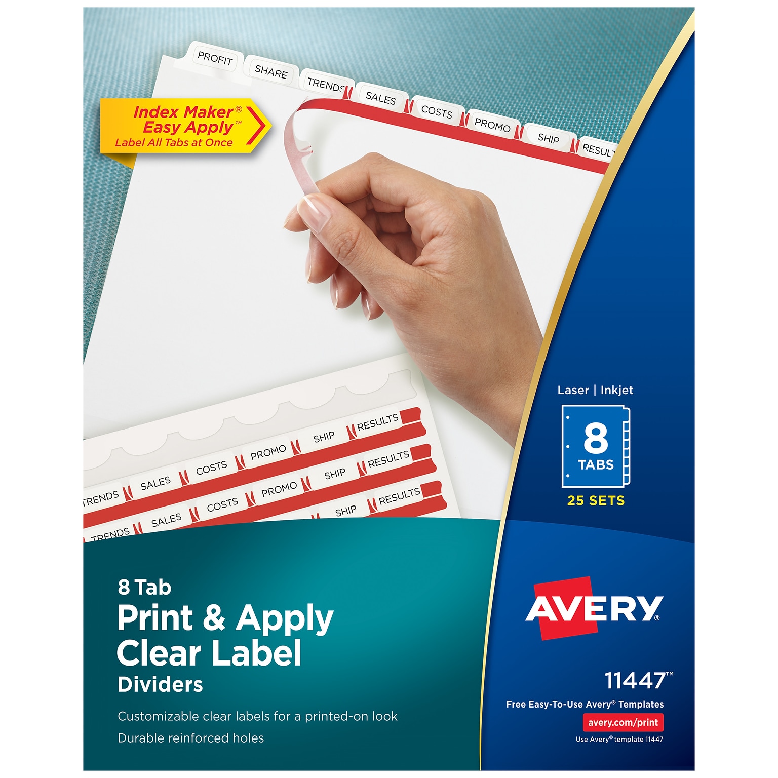 Web buy avery 11447, a product that allows you to print and apply labels to paper dividers with 8 tabs. Web whether youre organizing a single project or creating multiple sets, index maker clear labels virtually disappear on divider tabs.