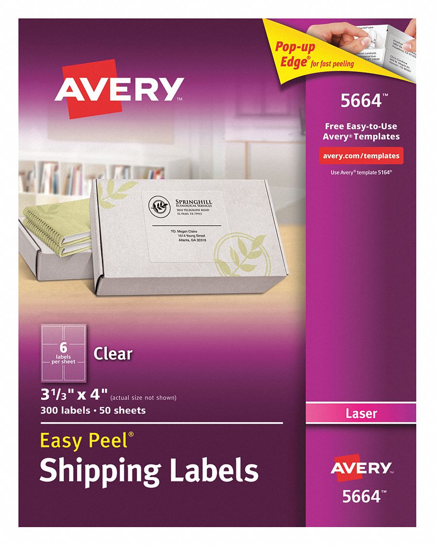 AVERY Laser Label 5,664 Avery Template , Clear, 3 1/3 in Label Ht, 4