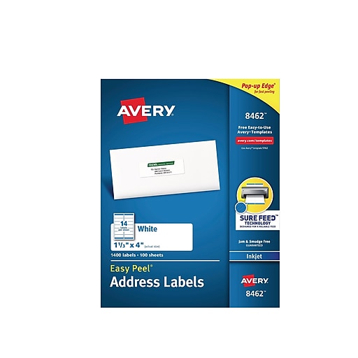 Avery® Easy Peel(R) Address Labels, 11/3" x 4" , 1,400 Labels (8462