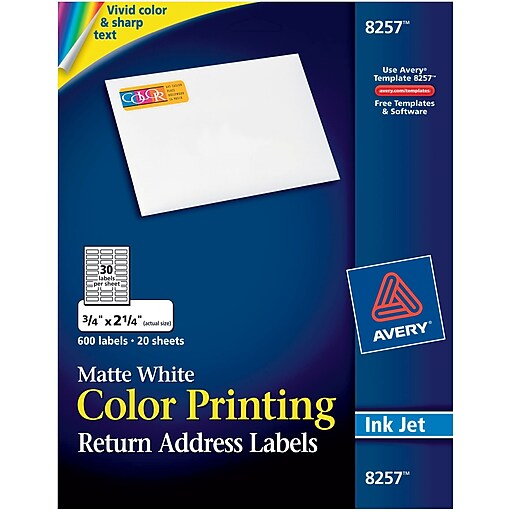 Avery® 8257 Color Printing Matte White Inkjet Return Address Labels, 3/