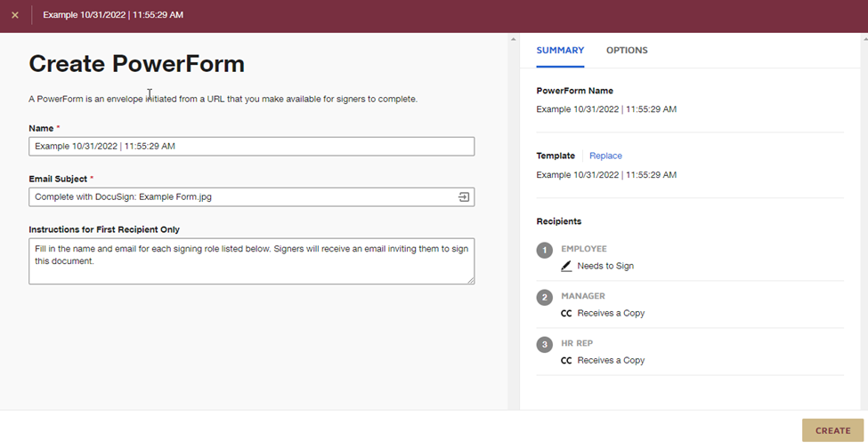 How do I create a PowerForm in DocuSign?