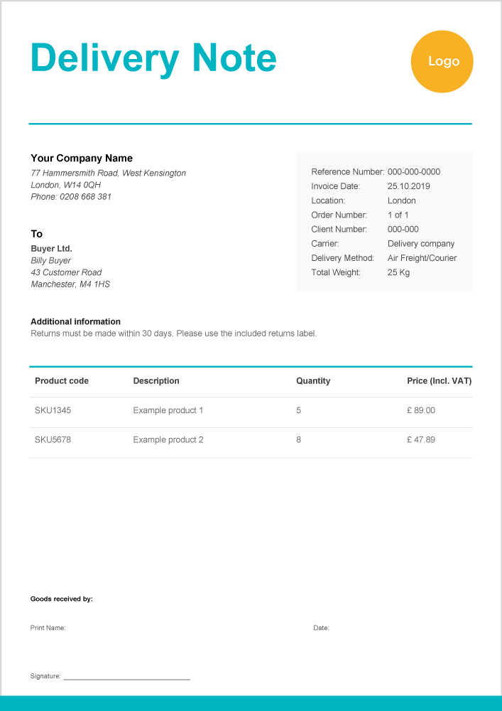 Delivery Note Template Free Download in Word or Excel Zervant