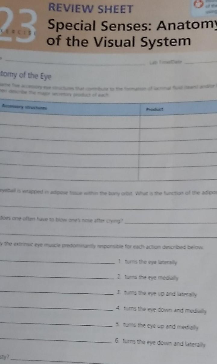 Solved 23 REVIEW SHEET Special Senses Anatomy of the Visual