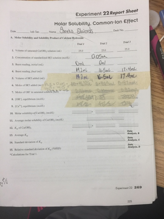 Solved Experiment 22 Report Sheet Molar Solubility,