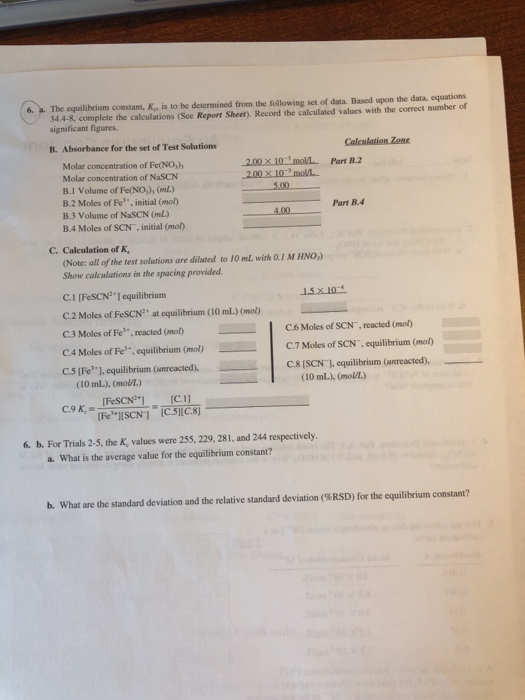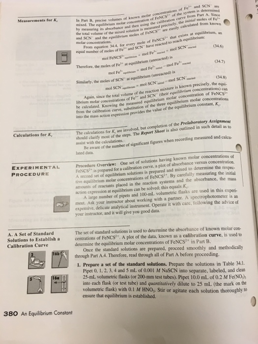 Solved Experiment 34 Prelaboratory Assignment An Equilibrium