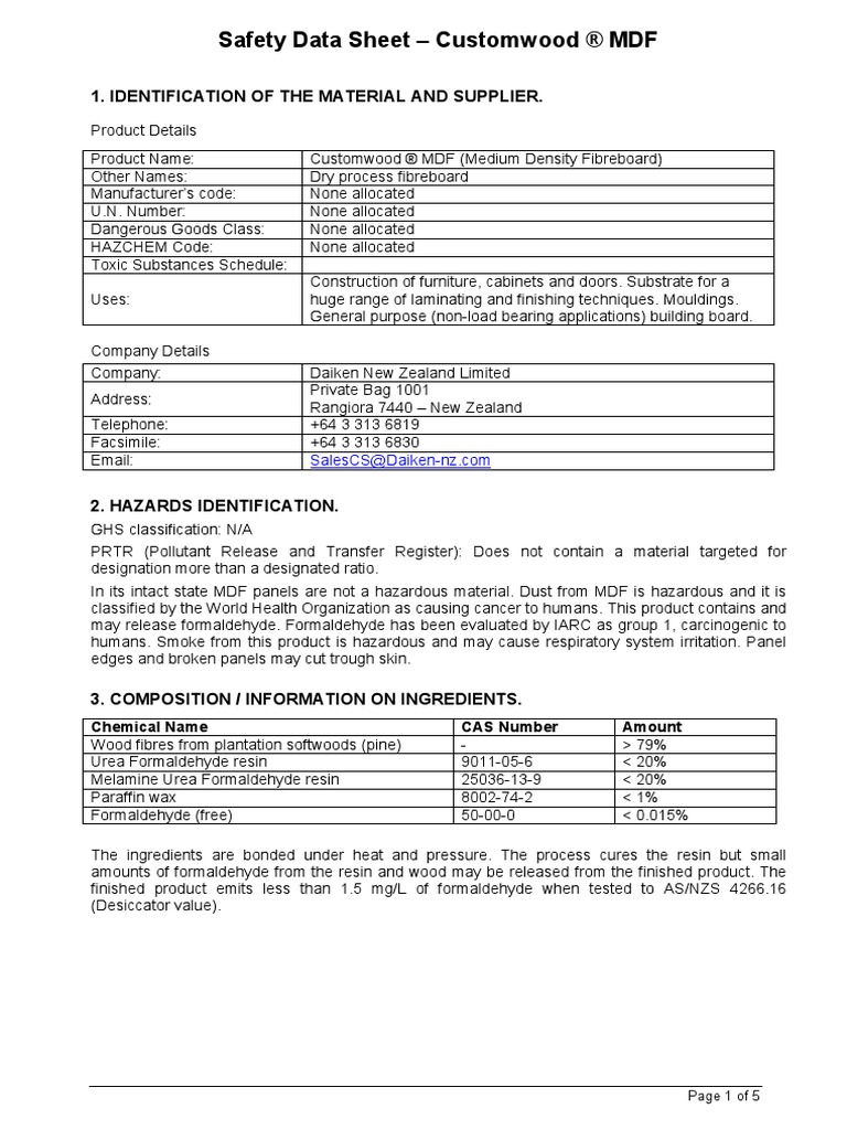 Daiken Materials Safety Data Sheet Formaldehyde Chemistry