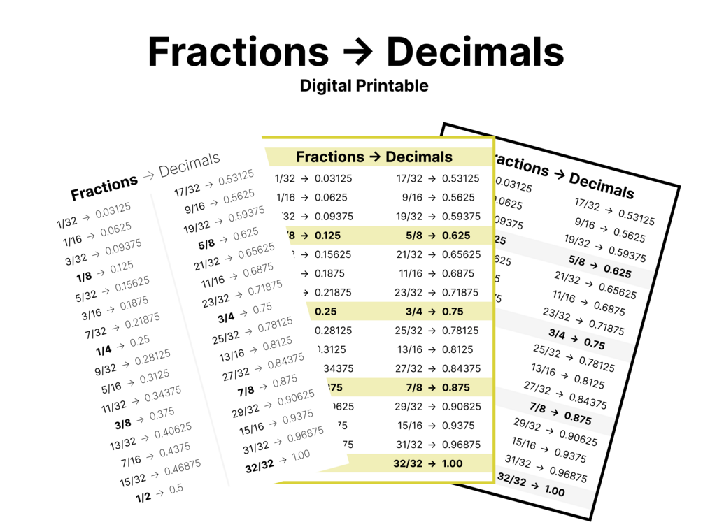 Fraction to Decimal Conversion Chart Indoor