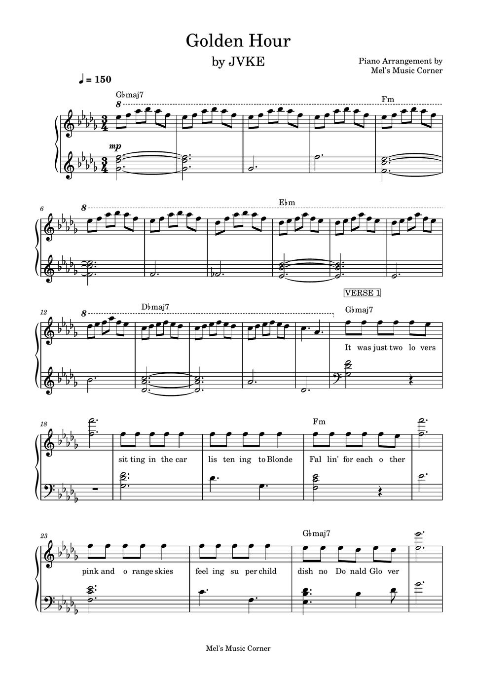Golden Hour Piano Solo Sheet Music - Web download and print in pdf or midi free sheet music for golden hour by jvke arranged by jefflin555 for piano (solo)