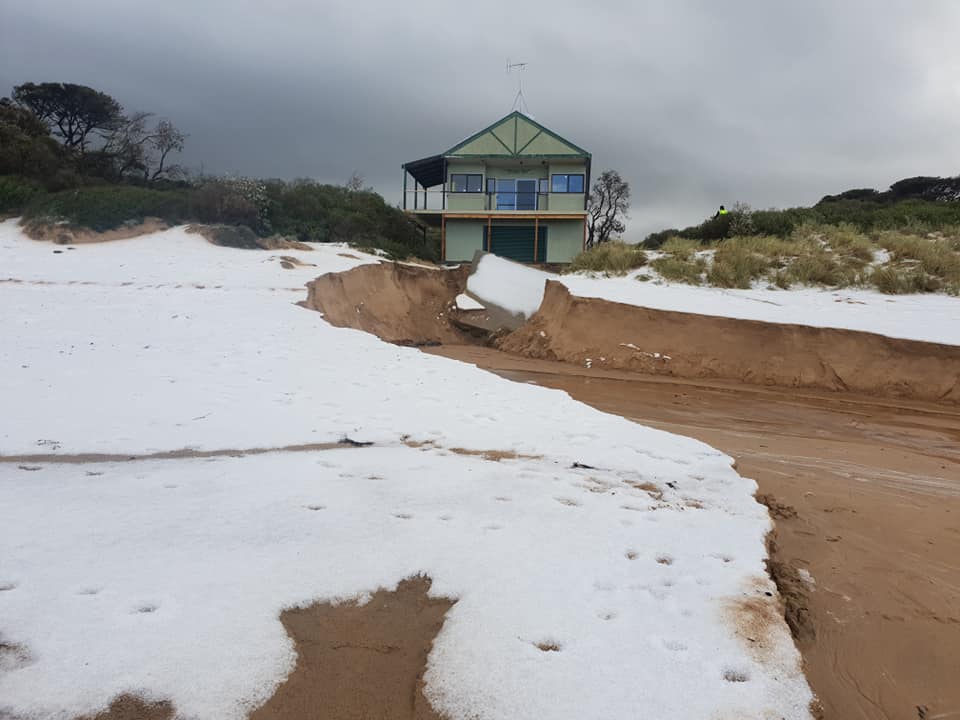South Gippsland hailstorm blankets beaches as wet weather sweeps across