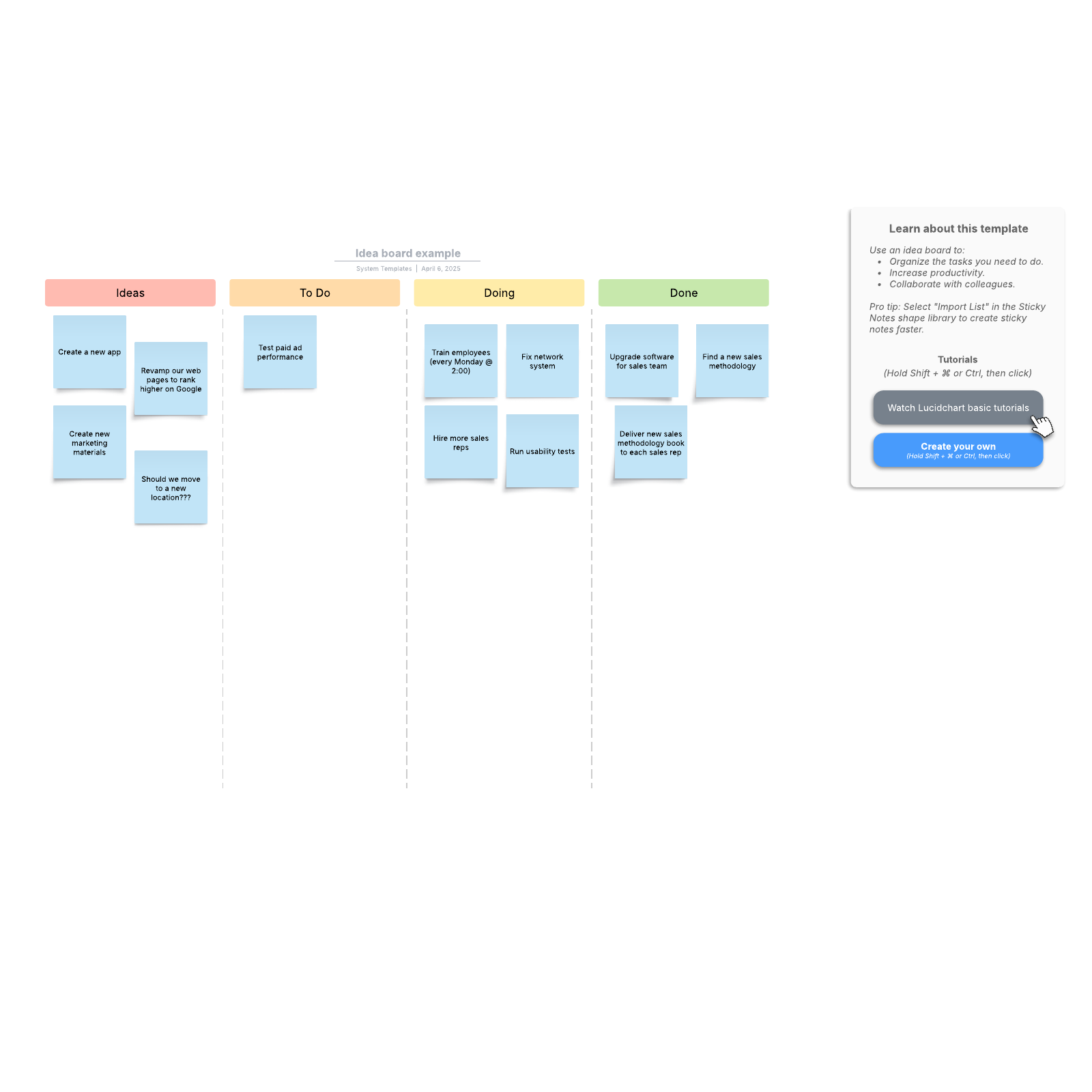 Idea board example Lucidchart