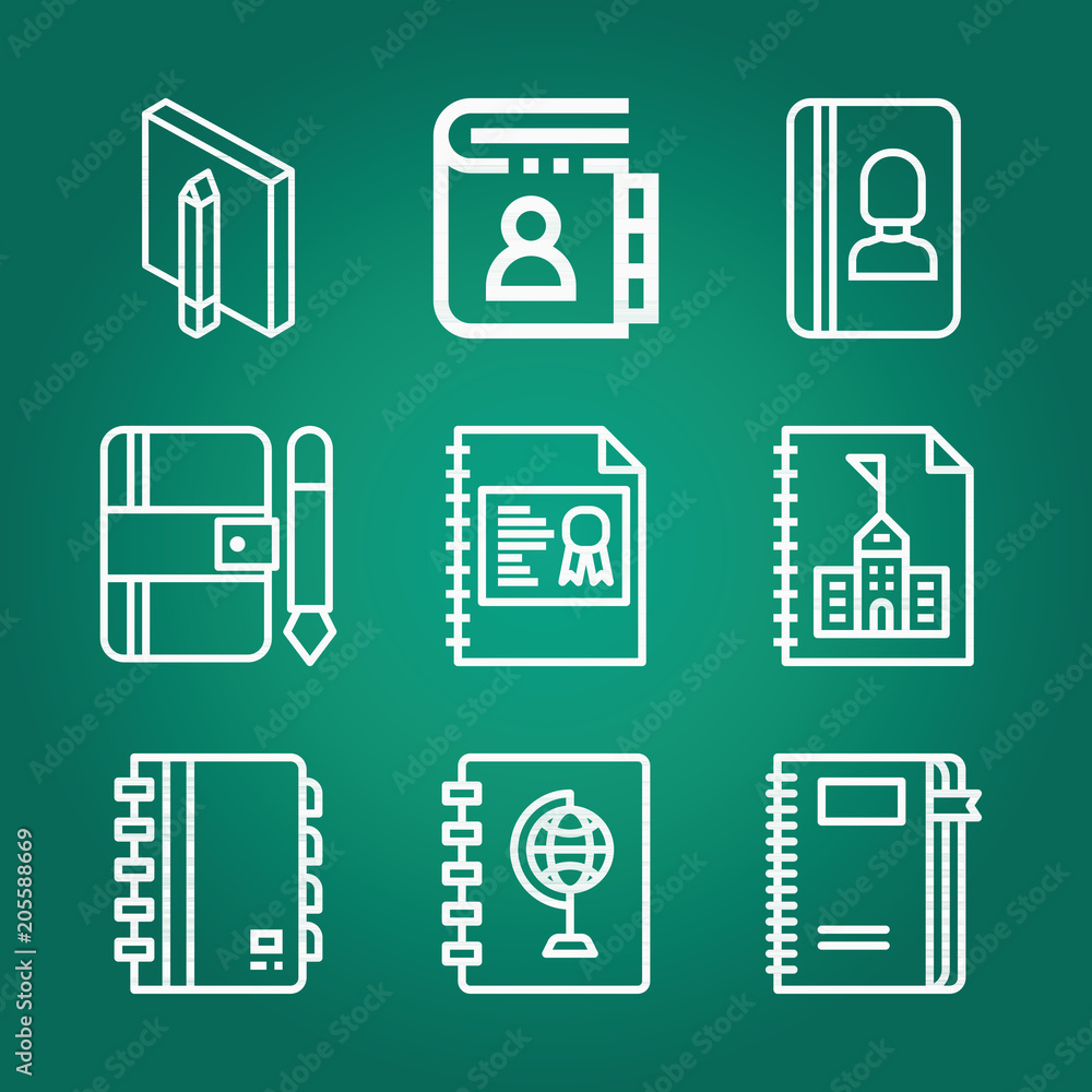 Outline bookmark 9 vector icons set. bookmark icon page symbol for your