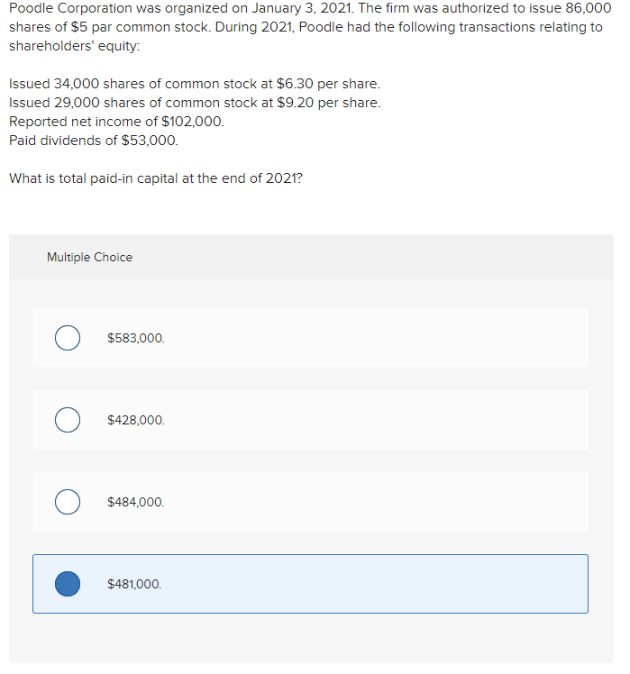 Solved Poodle Corporation was organized on January 3, 2021.