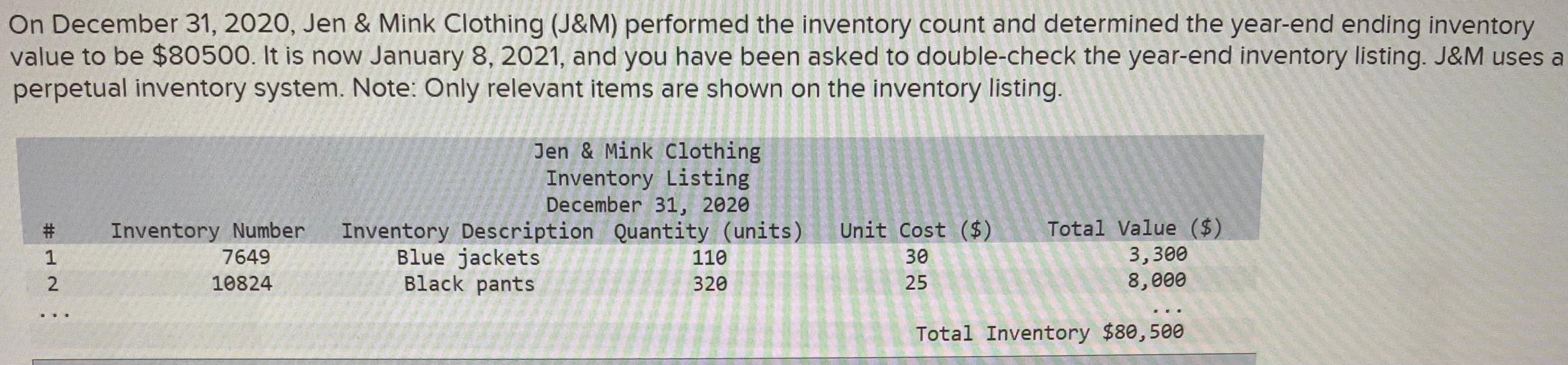 Solved On December 31, 2020, Jen & Mink Clothing (J&M)