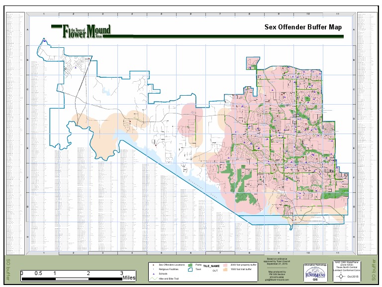 Map of Town of Flower Mound showing prohibited areas of sexoffender
