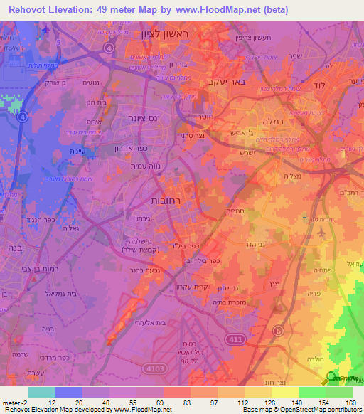 Elevation of Rehovot,Israel Elevation Map, Topography, Contour