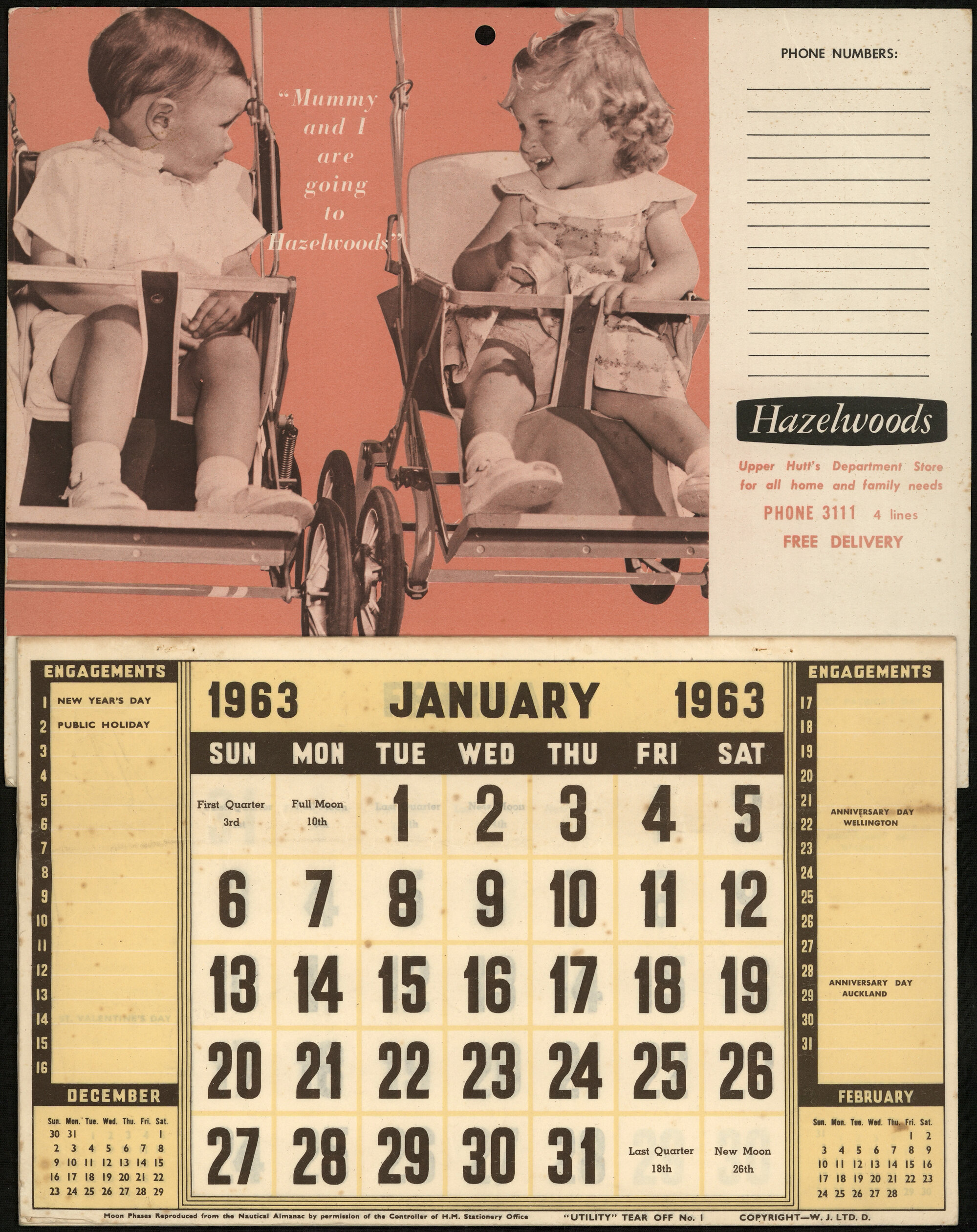Hazelwoods calendar, 1963 Upper Hutt City Library