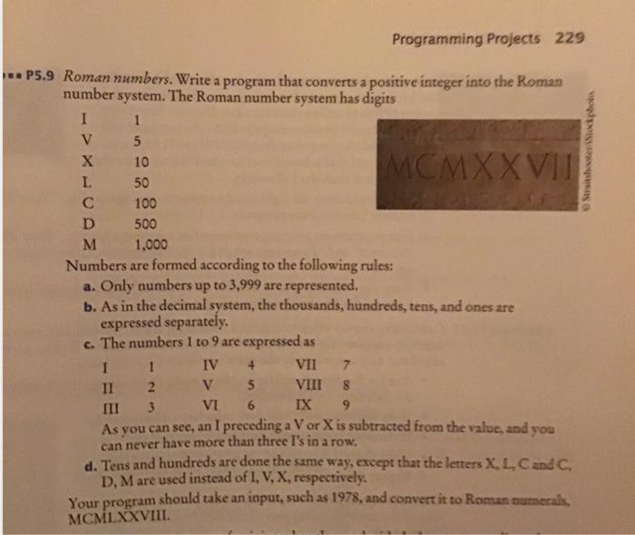 Solved Programming Projects 229 MCMXXVII P5.9 Roman numbers.