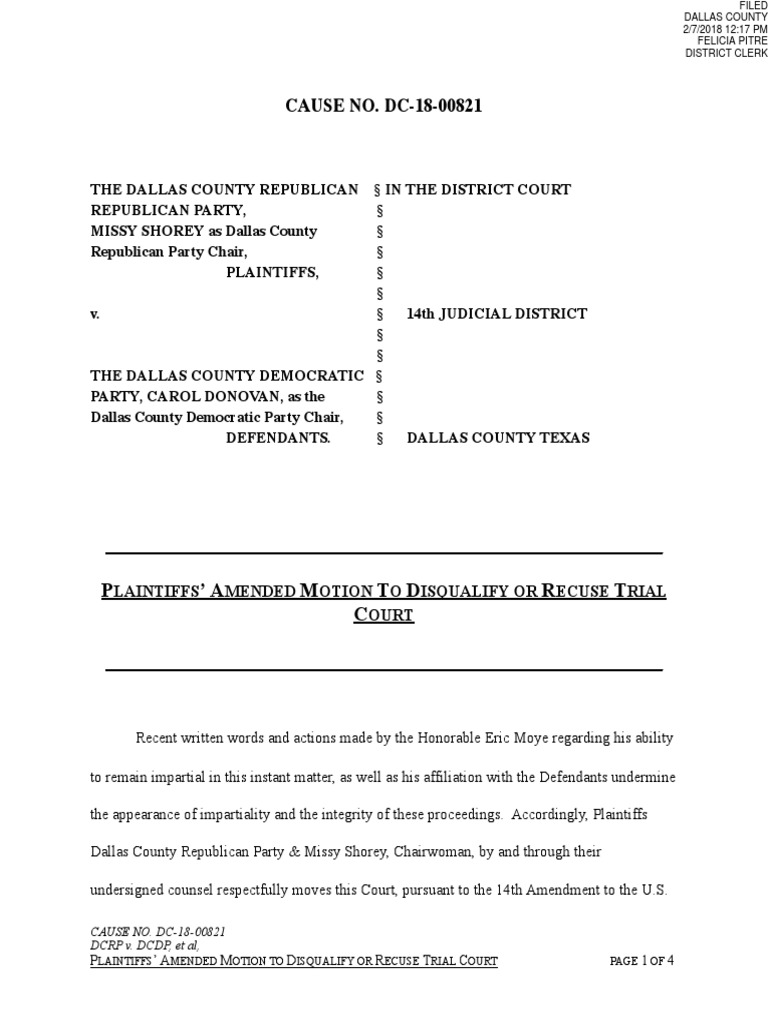 Motion For Recusal PDF Judicial Disqualification Judge