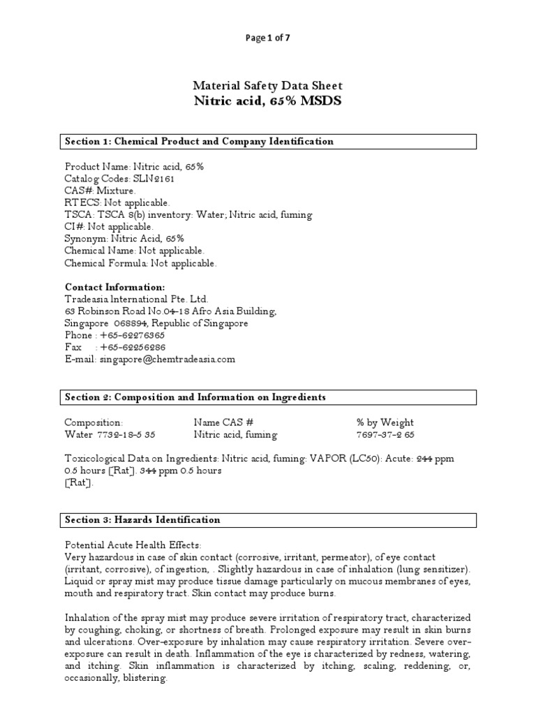 (PDF) p Material Safety Data Sheet Nitric acid, 70 MSDS Section 1