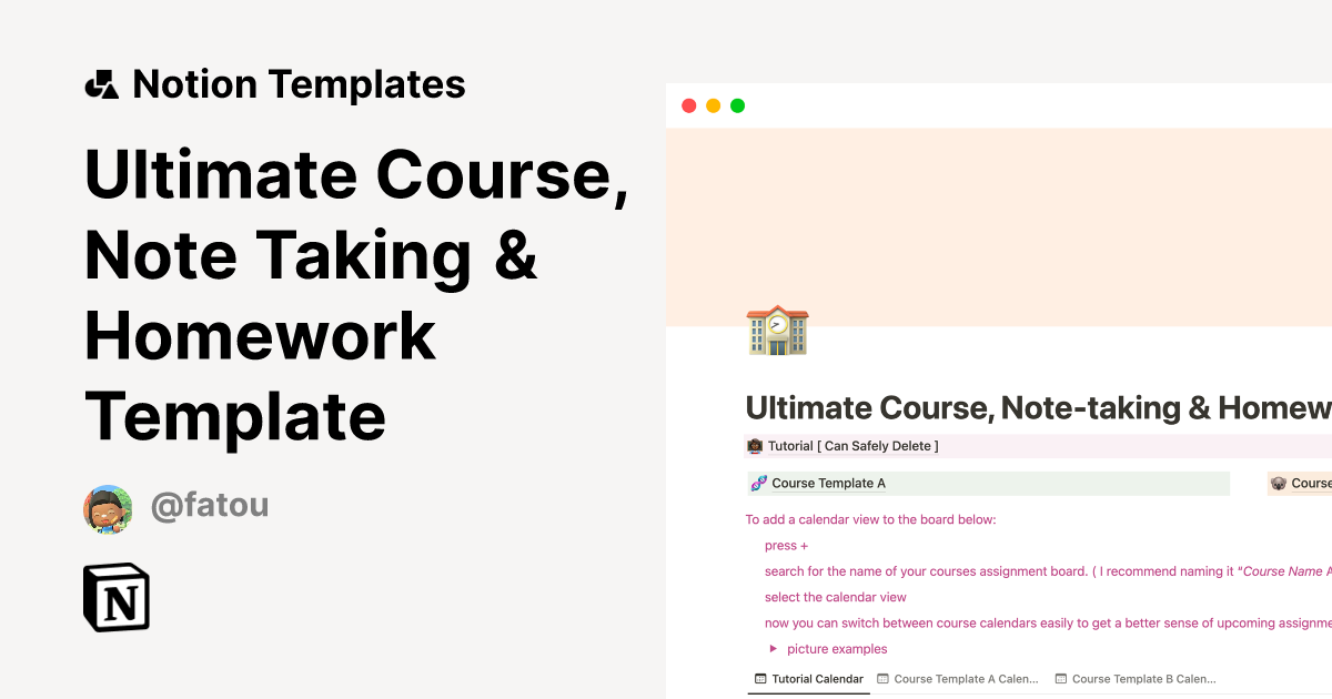 Ultimate Course, Note Taking & Homework Template Notion Template