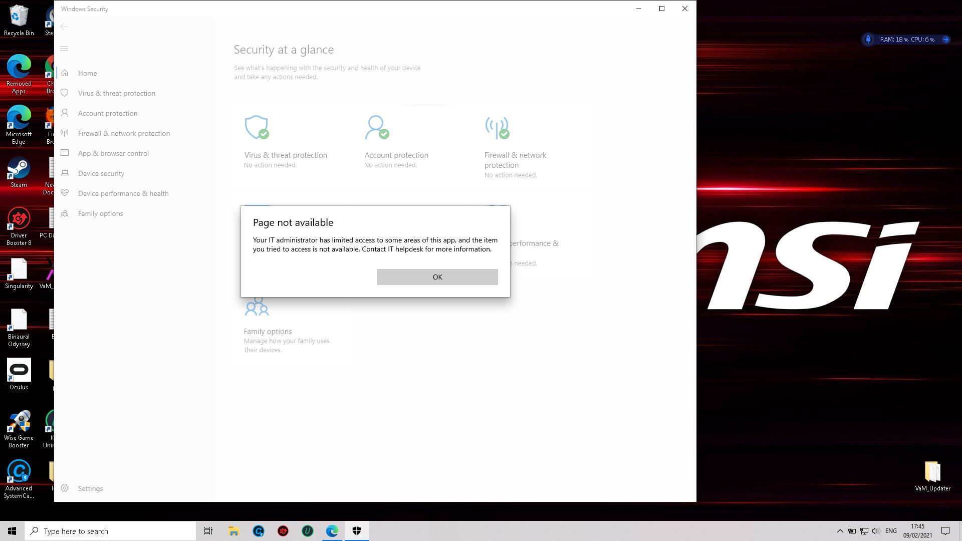 Scan your computer with malwarebytes and. Web page not available: Web it would seem that there's something disabling defender. Your it administrator has limited access to some areas of this app, and the item you tried to.