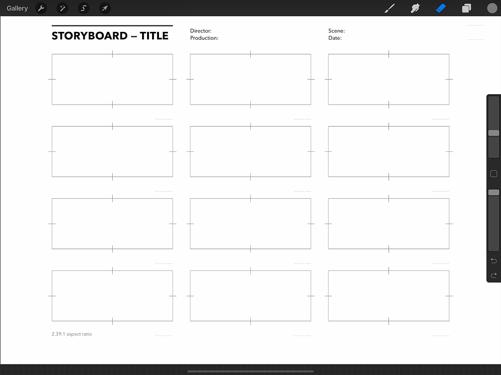 Free Procreate Storyboard Template for 2.391 aspect ratio (scope) 12