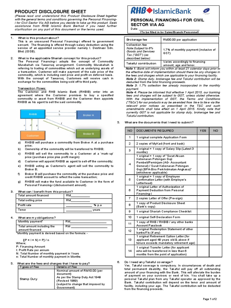 product disclosure sheet Alliance Bank Malaysia Berhad