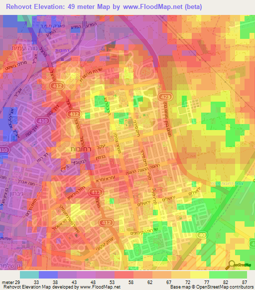 Elevation of Rehovot,Israel Elevation Map, Topography, Contour