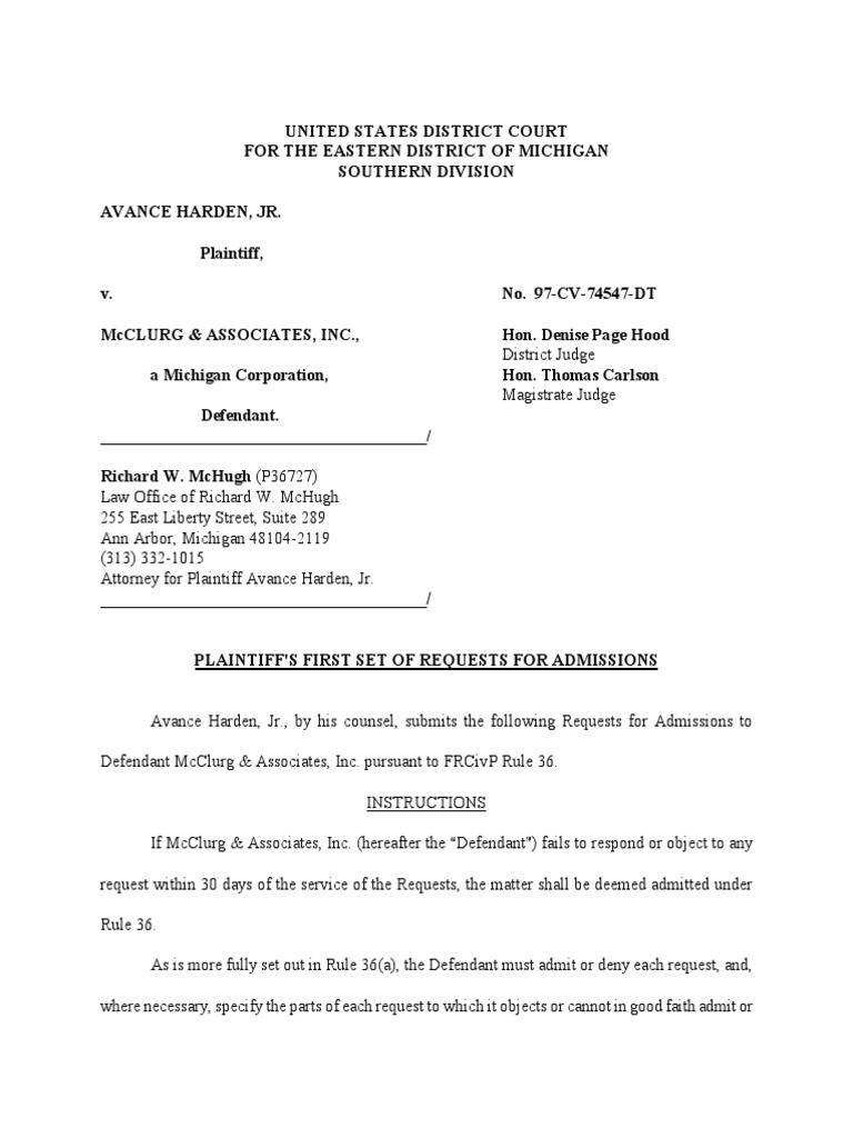Request For Admissions Template