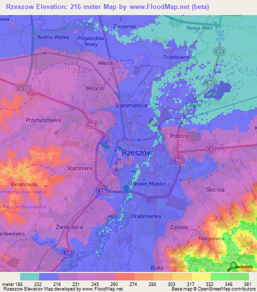 Elevation of Rzeszow,Poland Elevation Map, Topography, Contour