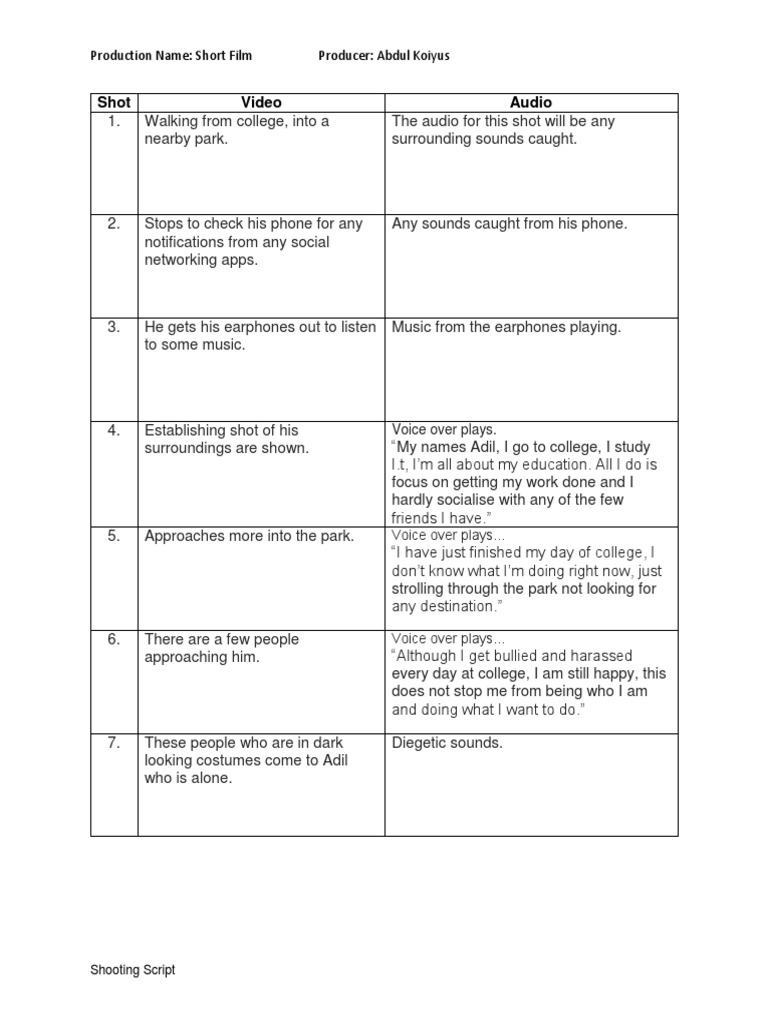 Shooting Script Template PDF Leisure