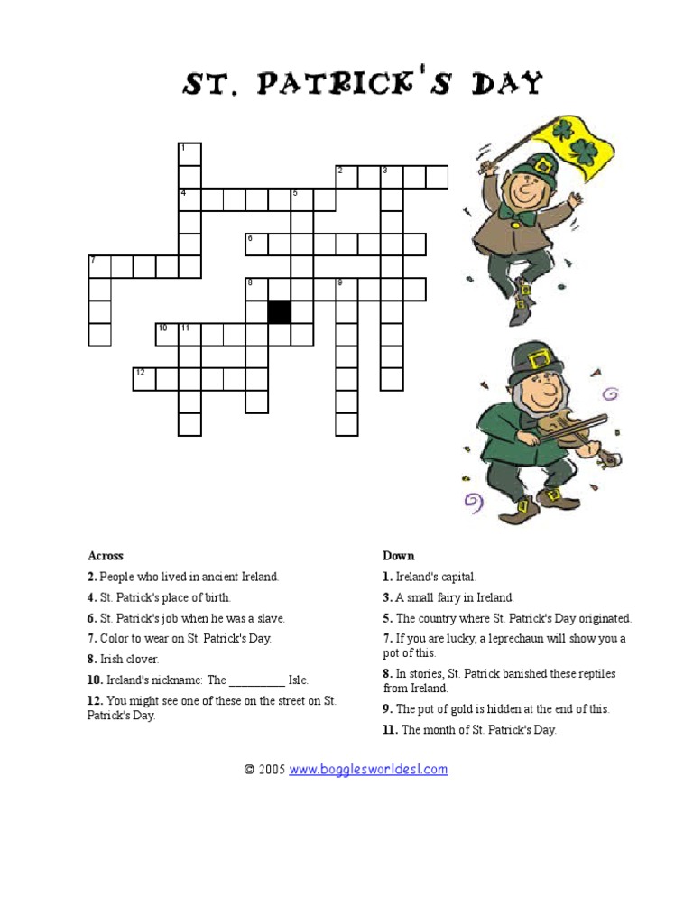 Download, print and start playing. Patrick’s day crossword puzzles for your little ones. There are columns and rows that are made up of crisp black and white squares. Have fun and test how much you know about saint patrick’s day trying to find the.