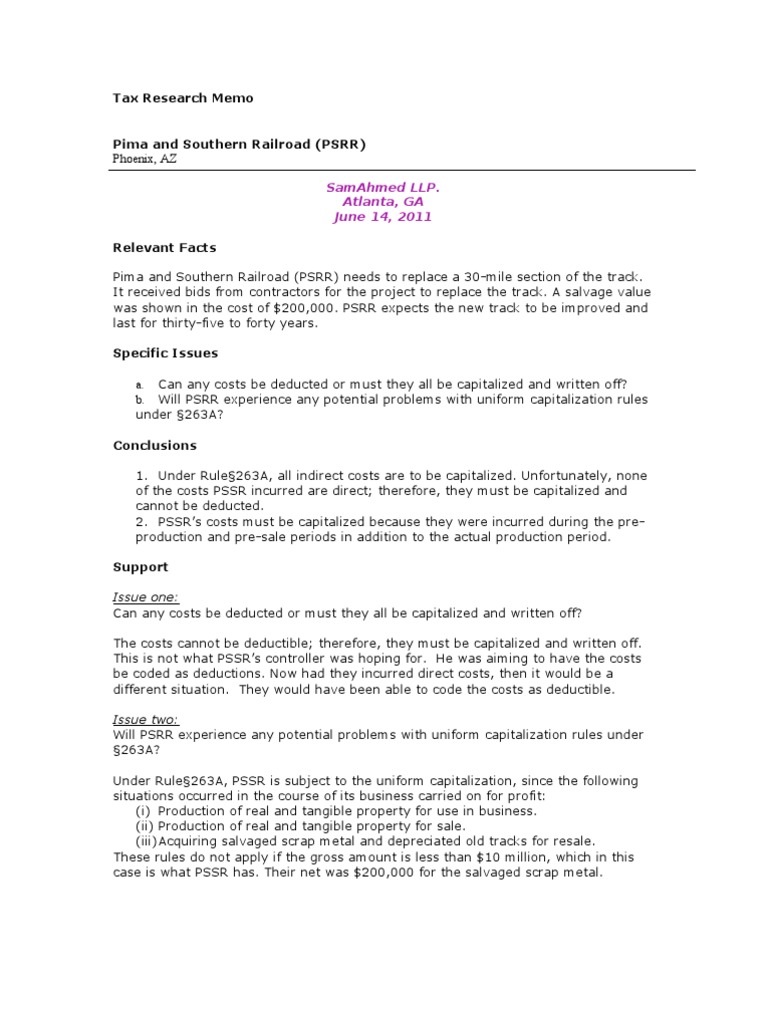 Tax Research Memo Example