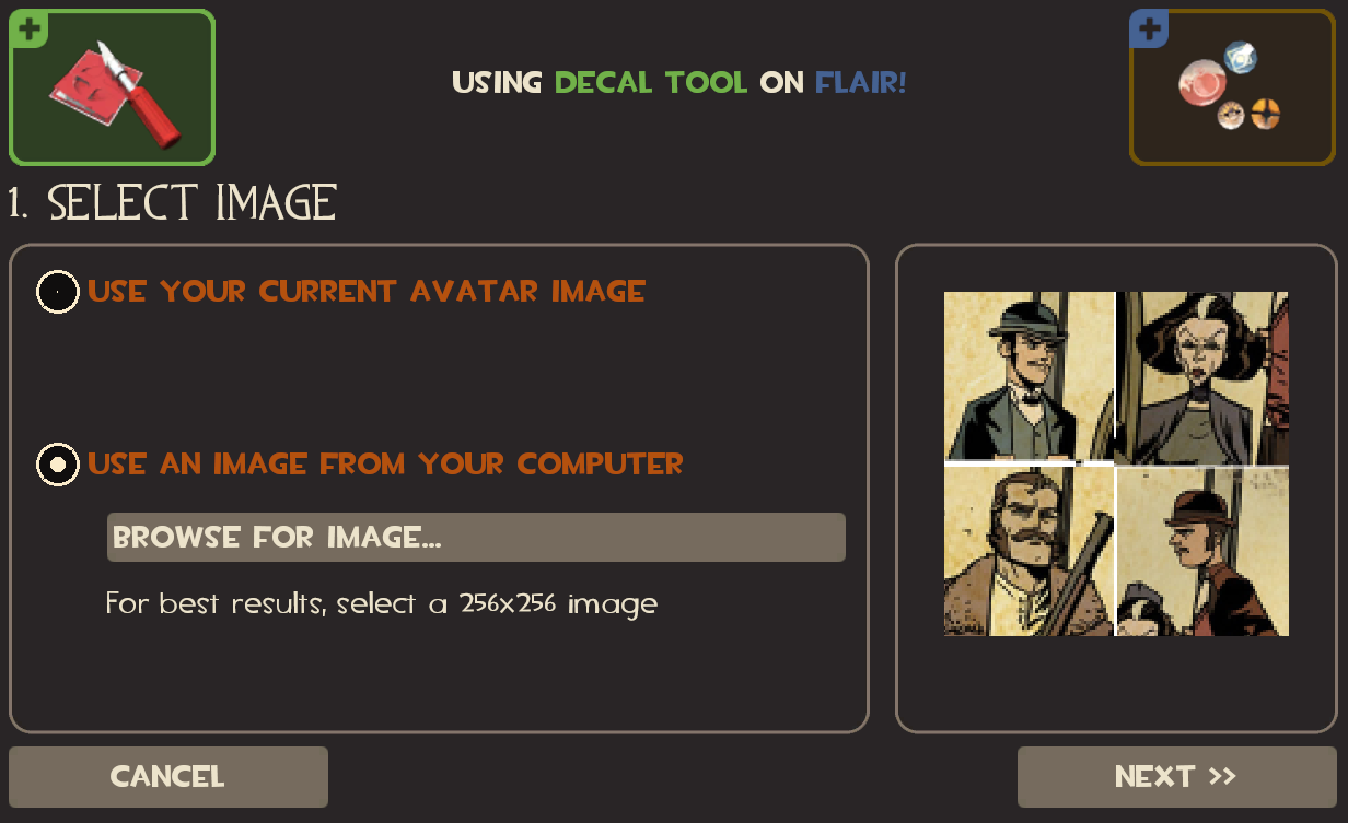 Left click it and select use with. Web high resolution flair! Web inside the last folder you created, custom_texture_blend_layers you need to save your target image as a. Step 2) select your image! Web start tf2 and look for the decal tool in your backpack.