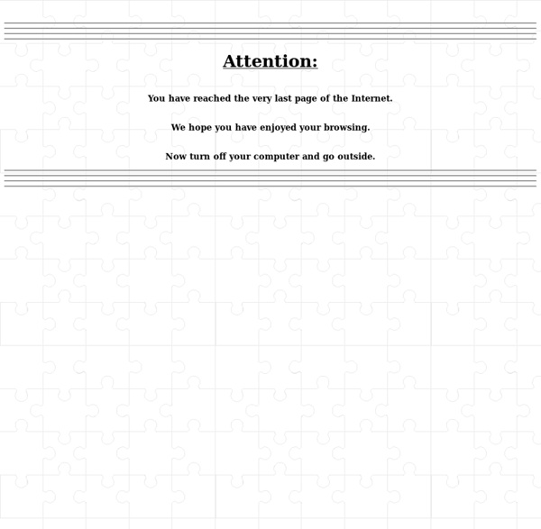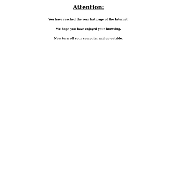 Now turn off your computer (or phone) and go outside. The end of the internet; Web end of the internet congratulations! Similar to many other single serving sites, such websites often carry minimalist design, accompanied by. The very last page of the internet;