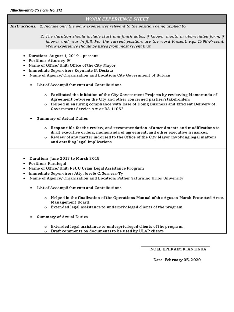 Web download the editable file for work experience sheet, one of the attachment to the personal data sheet (cs. Dear visitor, thank you for visiting the official.